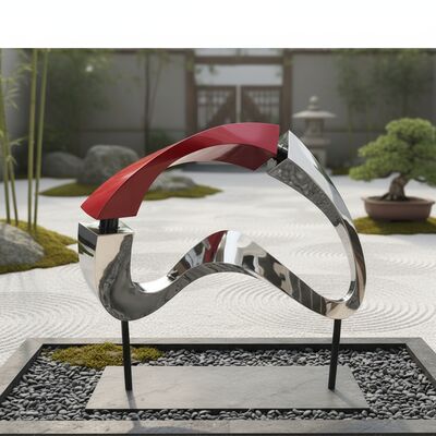 sEclipse Flow is an abstract metal sculpture crafted in high-quality stainless steel, combining polished silver surfaces with a bold red accent. The fluid, balanced form expresses movement and tension, making it a striking focal point for modern gardens, courtyards, and architectural landscapes. This stainless steel abstract sculpture reflects light beautifully and delivers a contemporary artistic statement with lasting durability.