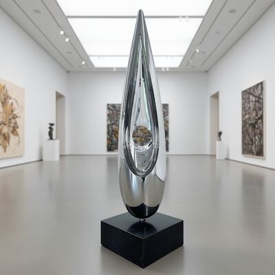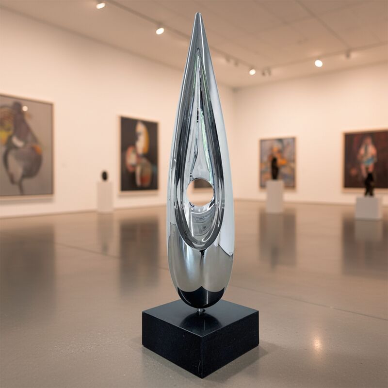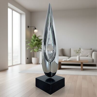 The "Déjà Vu (Static Edition)" captures the essence of its kinetic counterpart in a moment of perfect stillness. Standing at a commanding 2 meters tall, this sculpture serves as a silent sentinel in the landscape. Its polished surface does not move—instead, it invites the world to move around it. Clouds drift across its face, trees bow in reflection, and the changing light of day paints it anew each hour.