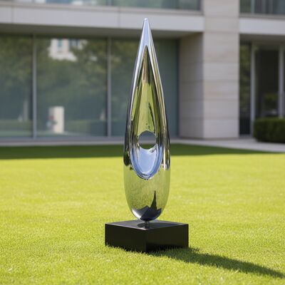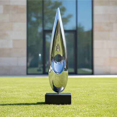 • Base: A sleek black granite plinth elevates the sculpture, creating a clean line between the art and the landscape. The dark stone grounds the piece, preventing it from feeling top-heavy.